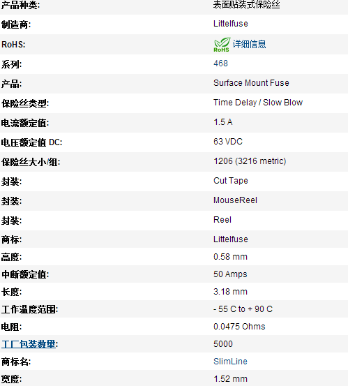 Lead-Free SlimLine 1206 Slo-Blo Fuse 468 Series