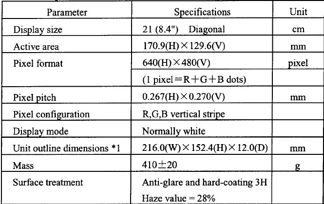 LCD Displays 10.4 inch (26.0 cm) 18-bit digital (6 bits/color)